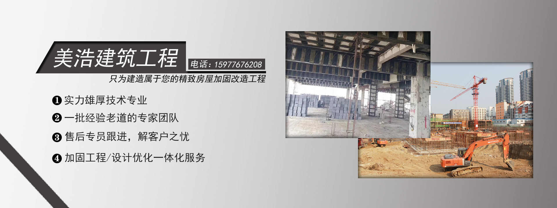 廣西美浩建筑工程有限公司,位于千年古縣,十載新區(qū)的廣西省南寧市邕寧區(qū)。注冊(cè)資金1080萬(wàn)元,是一家專(zhuān)業(yè)提供鋼筋混泥土切割,水下切割、加固、植筋、鉆孔、補(bǔ)強(qiáng)、切割加固、房屋切割加固/破碎拆除、橋梁切割加固/破碎拆除、建筑切割加固/破碎拆除等特種工程。美浩建筑擁有專(zhuān)業(yè)的施工團(tuán)隊(duì)和齊全的設(shè)備為基礎(chǔ),保障客戶項(xiàng)目按質(zhì)按量的順利完成。公司長(zhǎng)期與中鐵四局、中鐵建、中交、中建等建筑集團(tuán)合作。目前公司擁有設(shè)備:繩鋸切割機(jī),馬路碟鋸機(jī),水鉆機(jī),風(fēng)炮機(jī),挖機(jī),鉆孔機(jī)等特種設(shè)備。